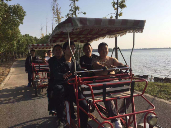 下午,我们来到了美丽的明珠湖,进行了环湖骑行。大家自由结伴,唱着歌、踩着自行车,在欢声笑语中结束了为期两天一夜的拓展活动。